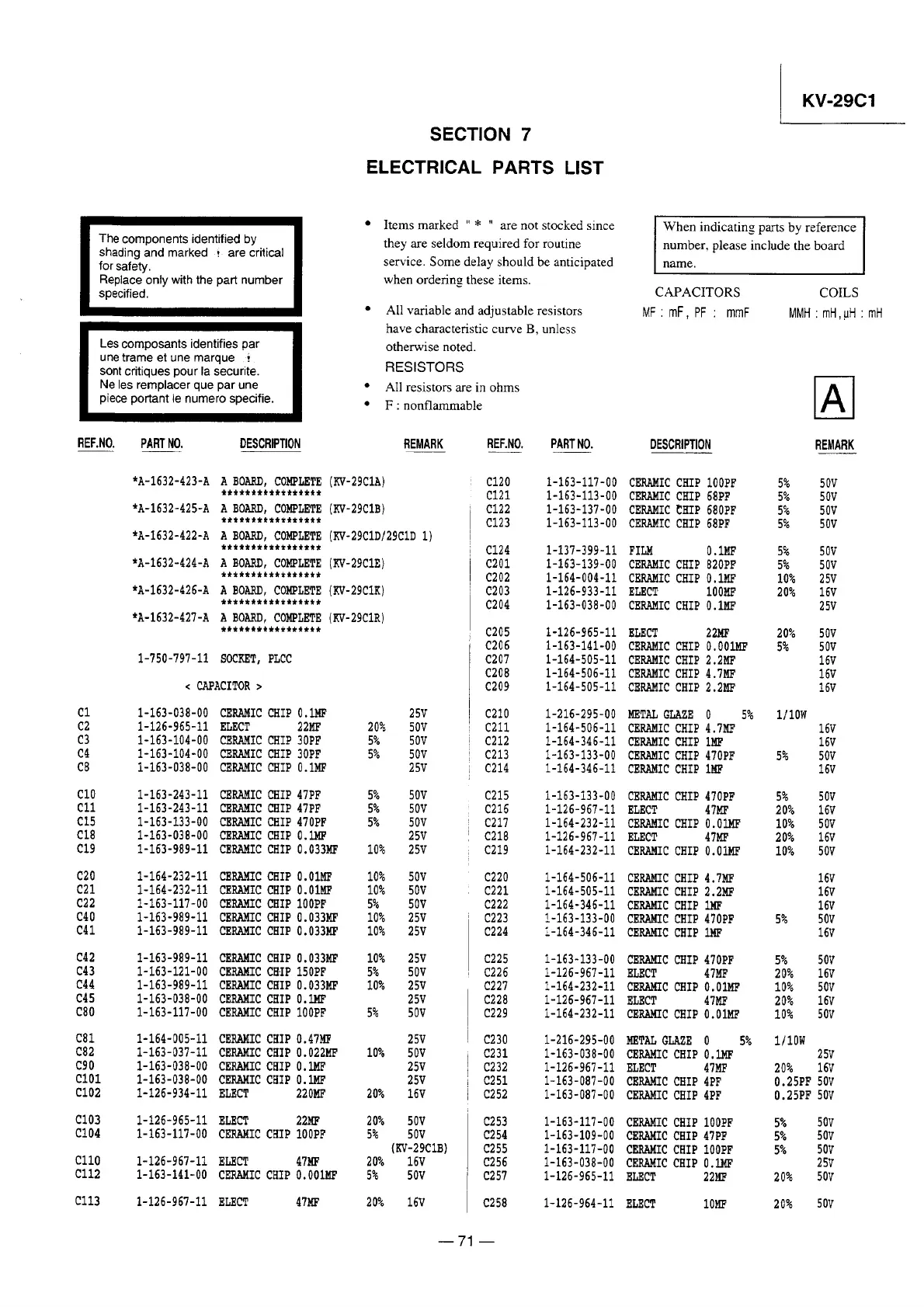 Sony KV-29C1E - SECTION 7 ELECTRICAL PARTS LIST
