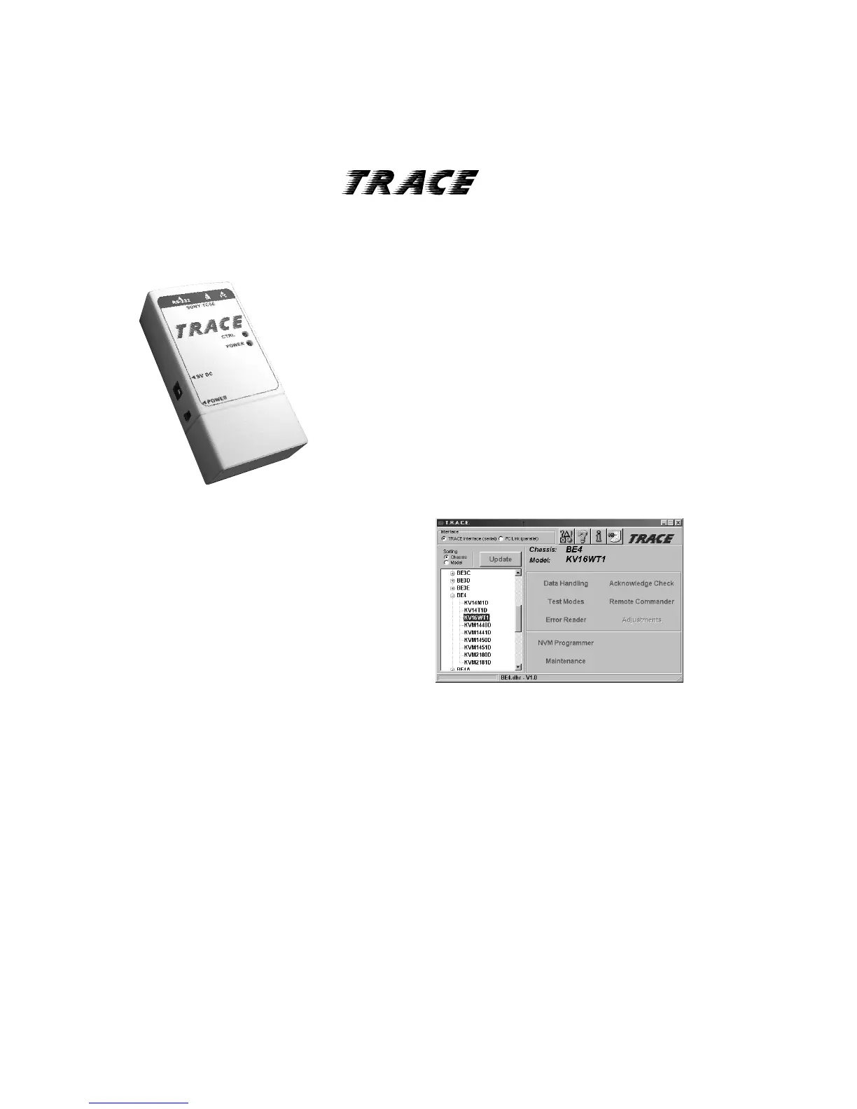 TV Data Handling software (9-948-340-50), but Error Reader and IR functions can only be accessed with the TRACE interface.