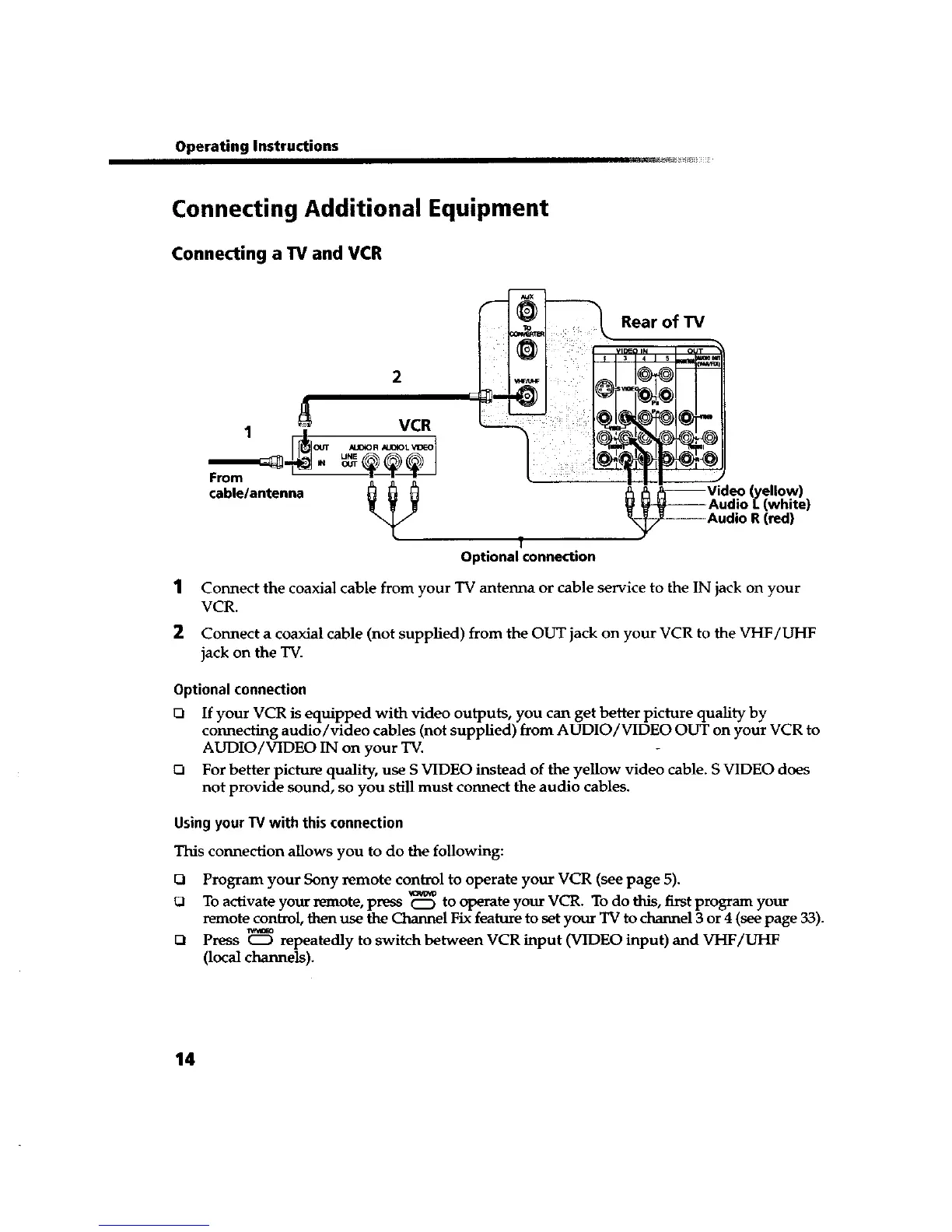 Q Program your Sony remote control to operate your VCR (see page 5).