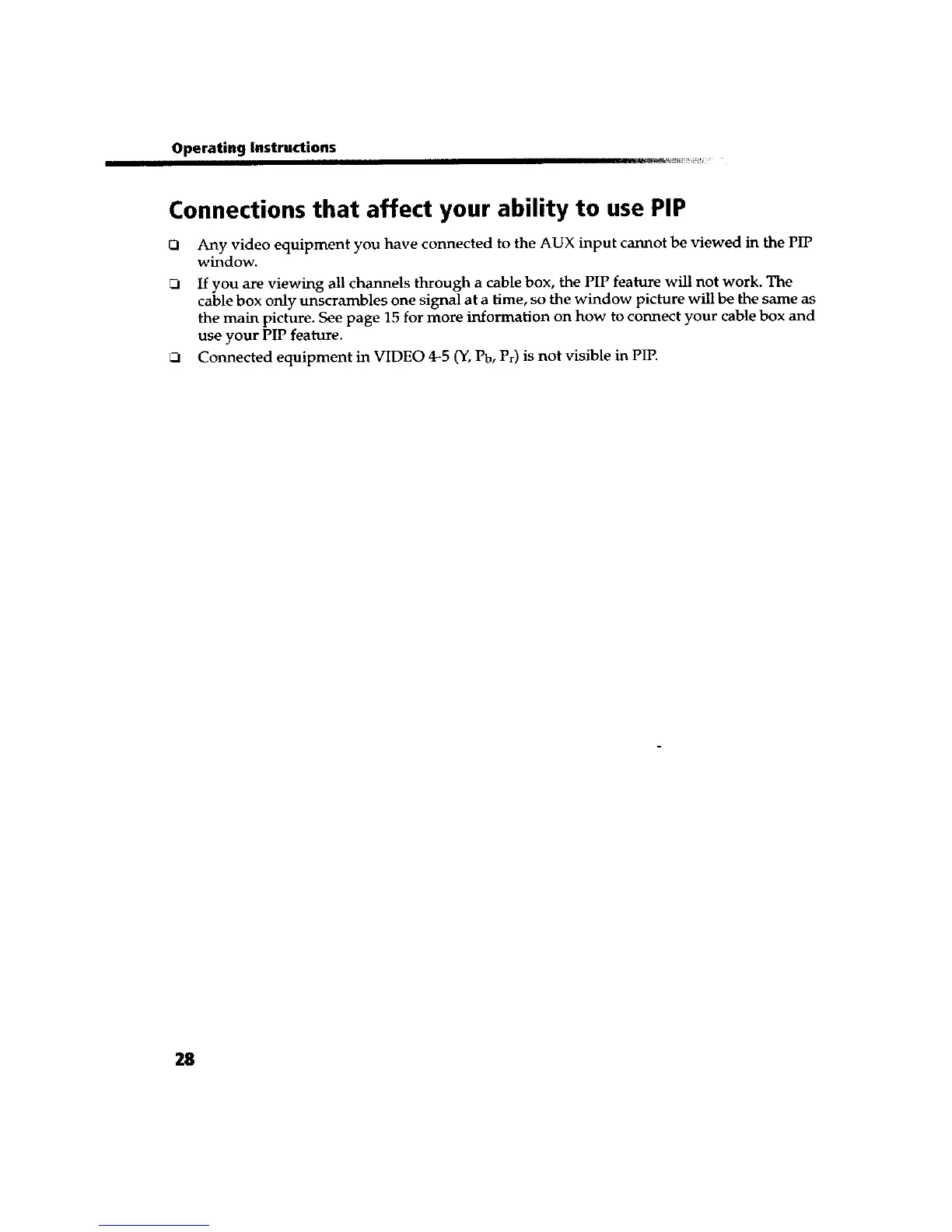 Connected equipment in VIDEO 4-5 (Y, Pb, Pr) is not visible in PIP.