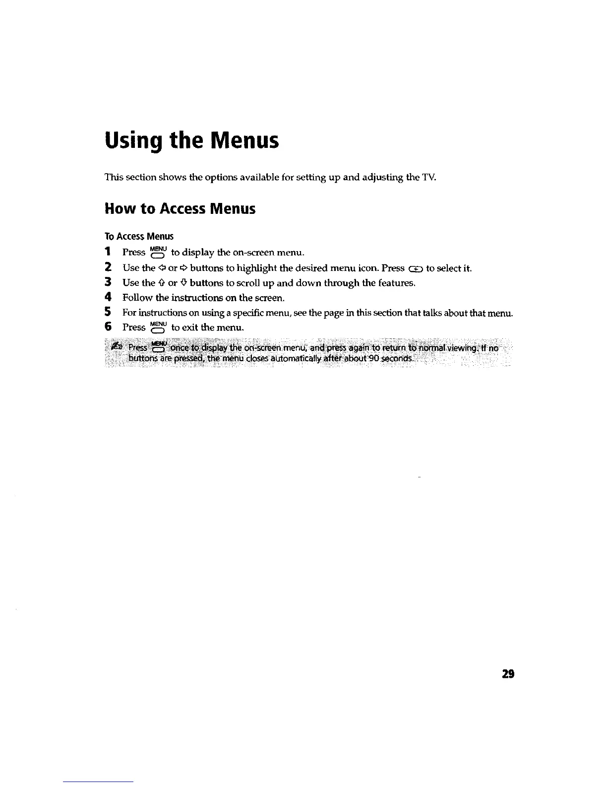 5 For instructions on using a specific menu, see the page in this section that talks about that menu.