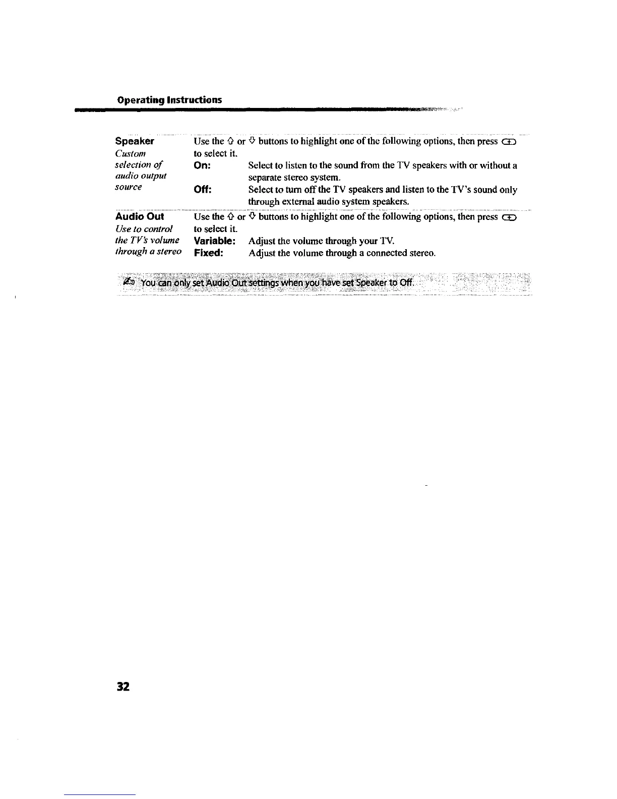 Audio Out Use the ,_ or '_ buttons to highlight one of the following options, then press C_