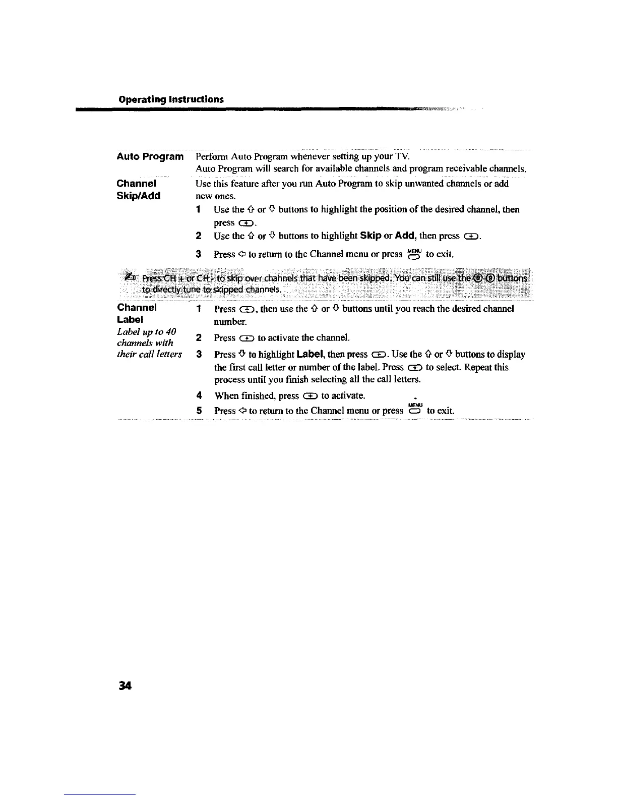 Channel Use this feature after you run Auto Program to skip unwanted channels or add