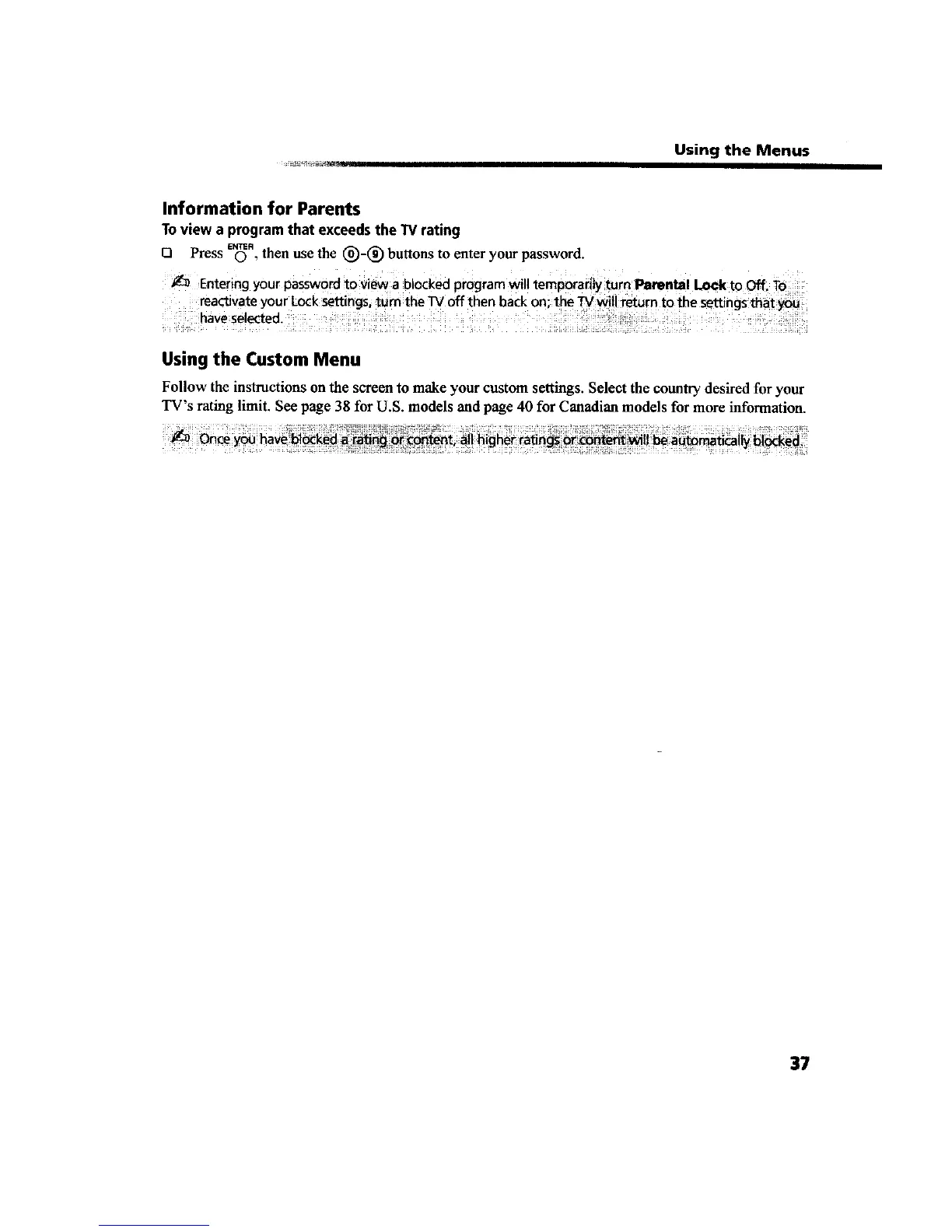 TV's rating limit. See page 38 for U.S. models and page 40 for Canadian models for more information.