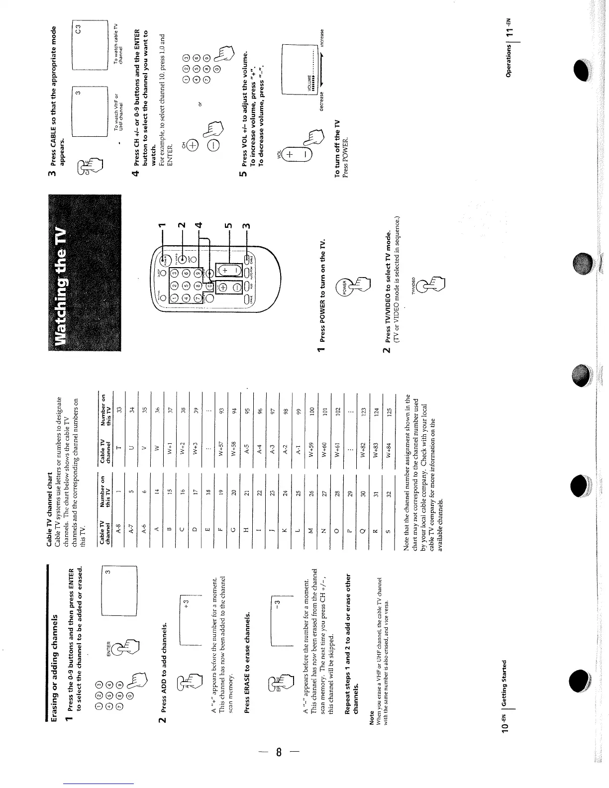 Sony KV-9PT20 - General Operations; Watching the TV; Erasing or Adding Channels