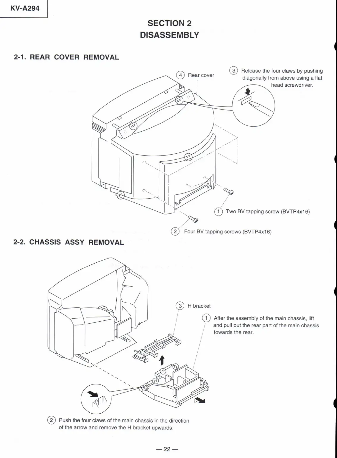 Sony KV-A2941A - Disassembly Procedures; Rear Cover and Chassis Assembly Removal