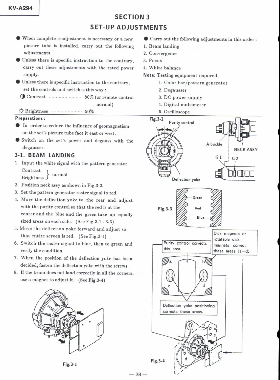 Sony KV-A2941A - Initial Setup Adjustments; Preparations and Beam Landing Adjustment