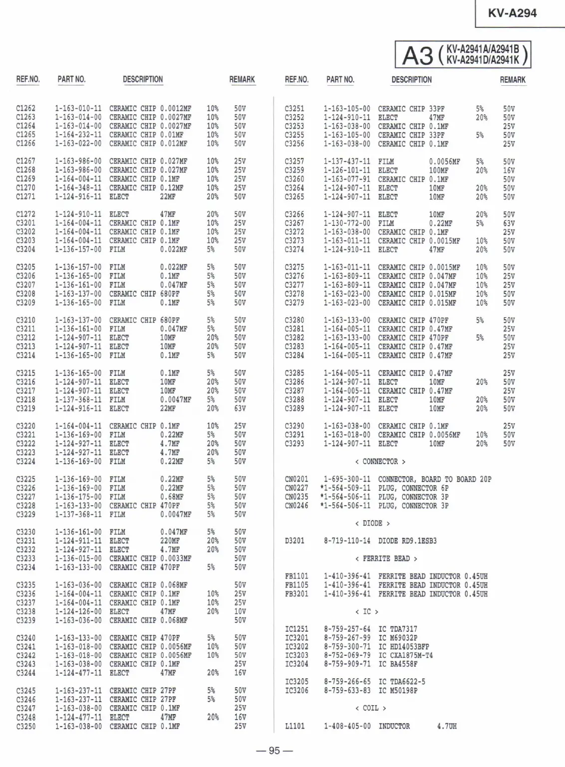 Sony KV-A2941A - Capacitors List
