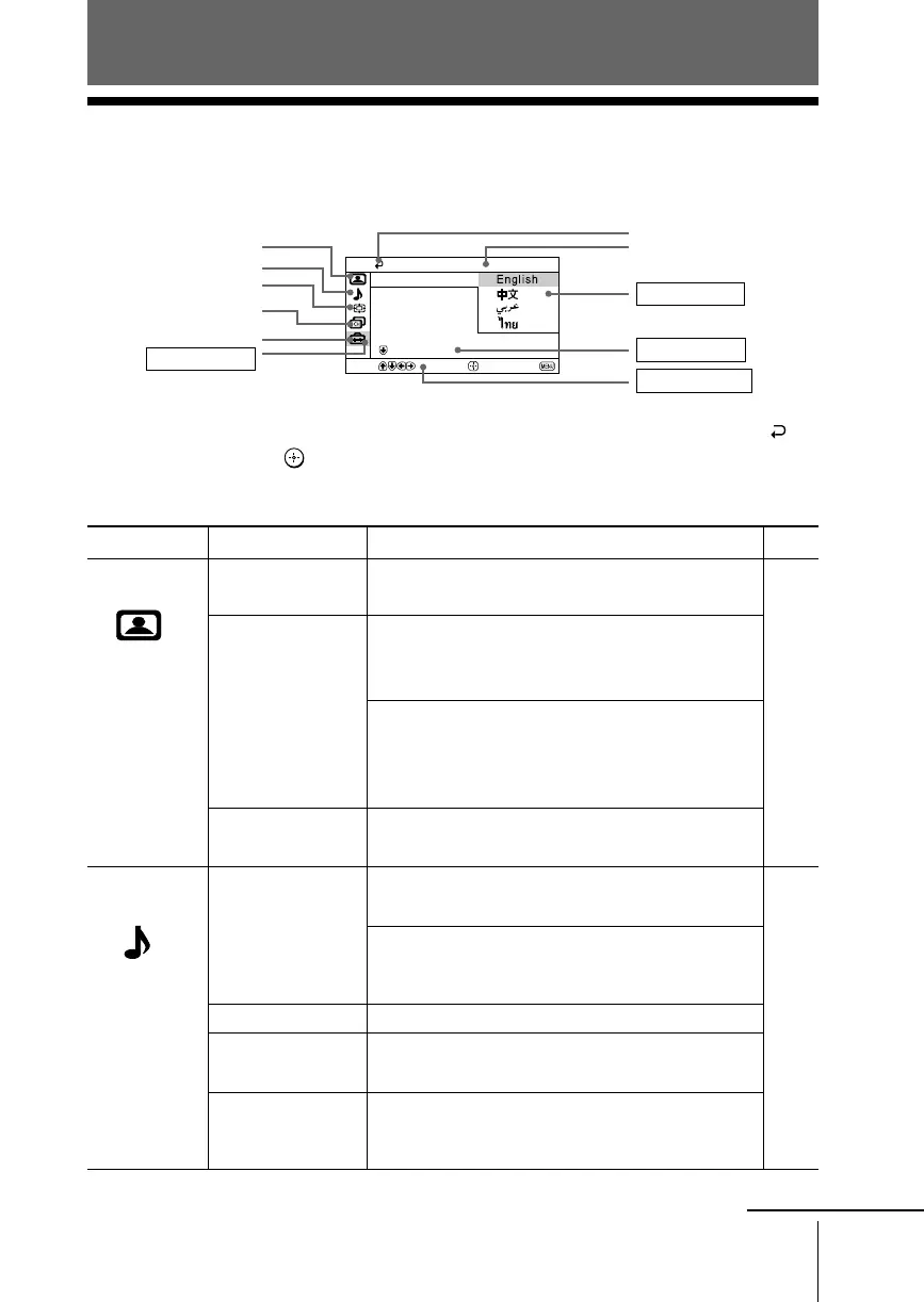 The following is an overview of the menu system.