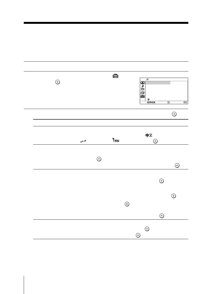 Press V or v to select the desired item (e.g., “Language”), then press .