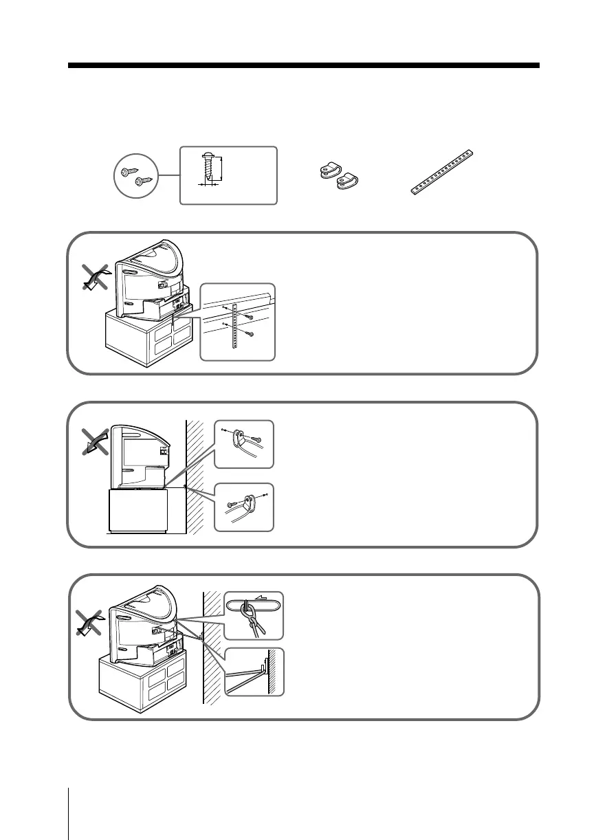 為防止電視機摔落﹐請使用所提供的螺絲、夾子和帶條以固定電視機。