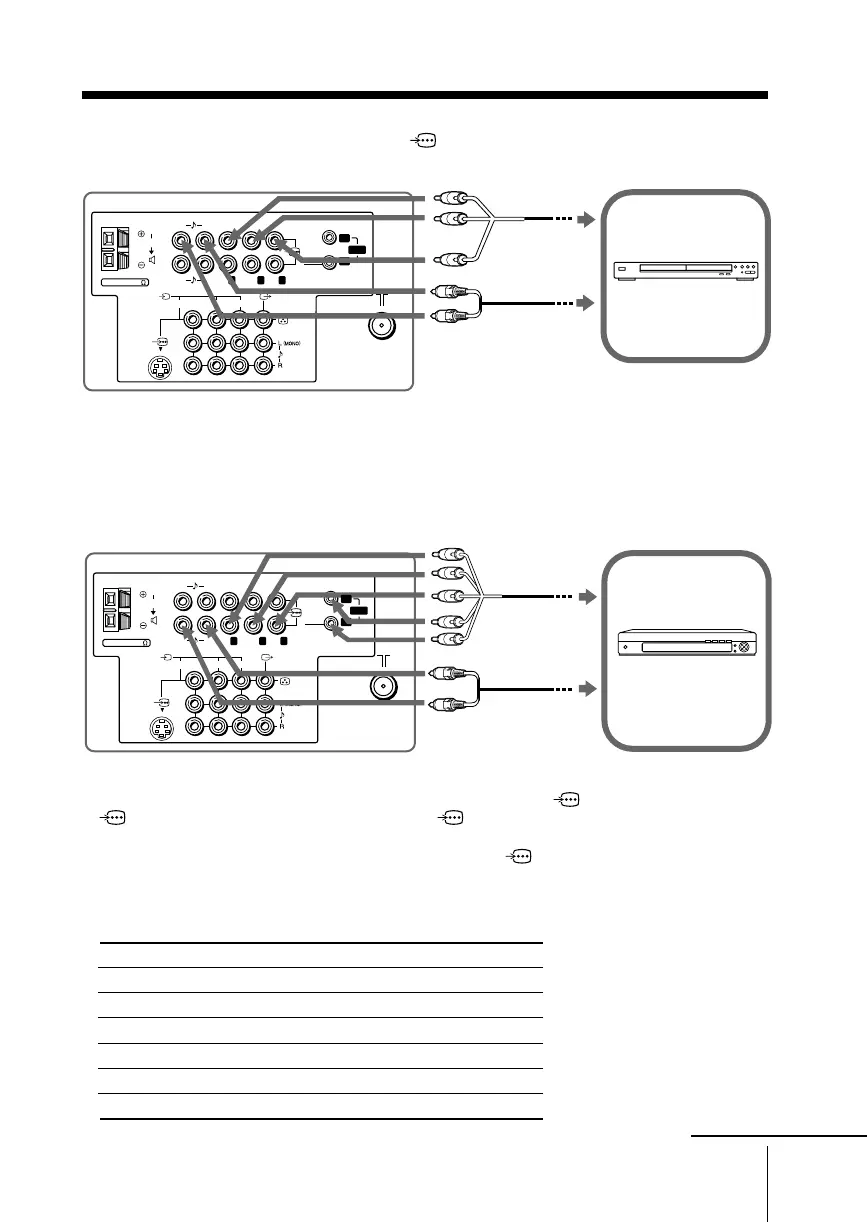 • 若您在電視屏幕上選擇“高清晰度/DVD1”或“高清晰度/DVD2”﹐T(監視器輸出)將不能