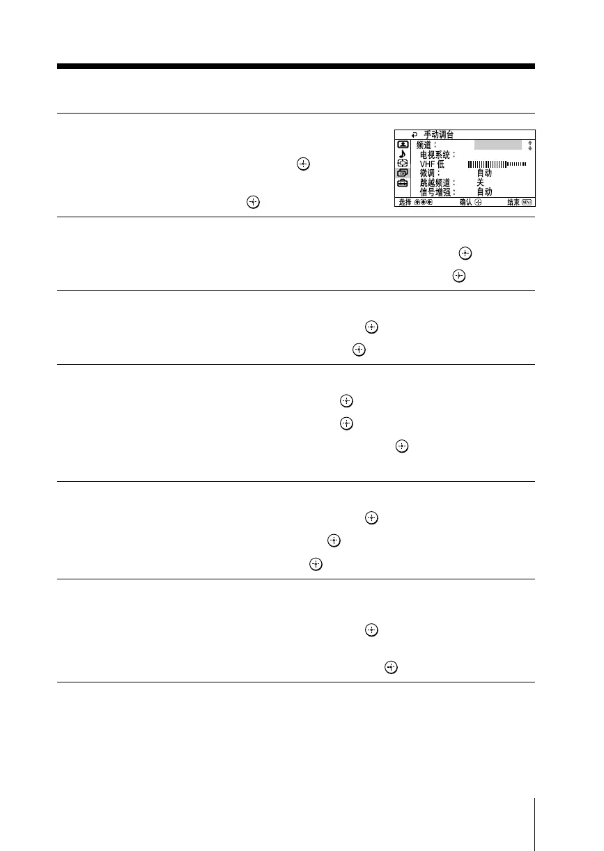 在选择“手动调台”之后,选择您要预设频道