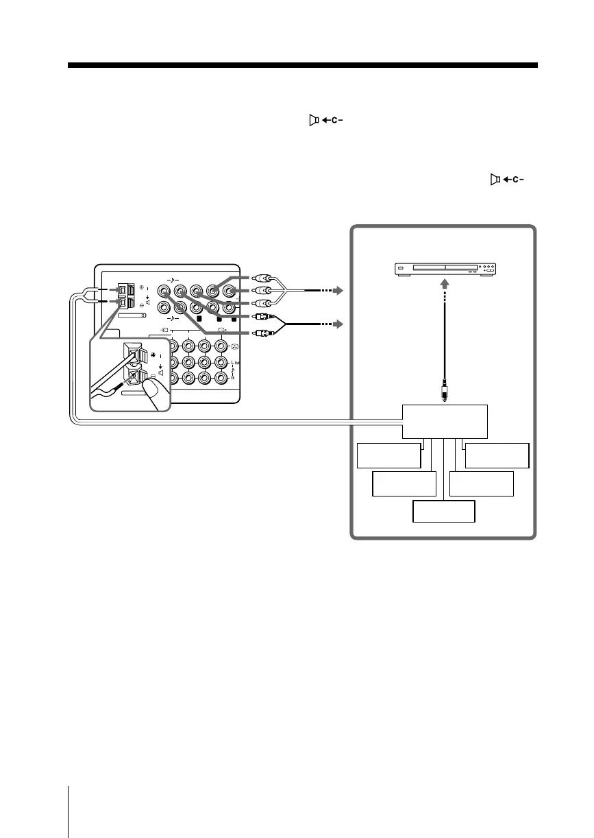 使用放大器提供的扬声器线时,请将放大器的中置扬声器端子连接至电视机的