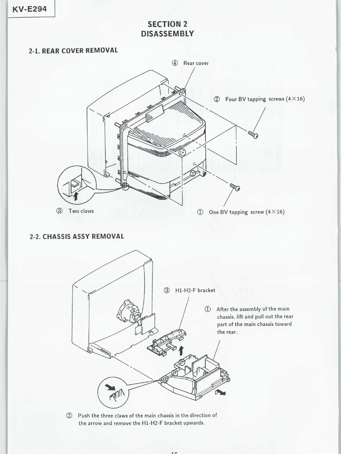 Sony KV-E2941D - Service Manual: Disassembly Procedures; Rear Cover Removal; Chassis Assembly Removal
