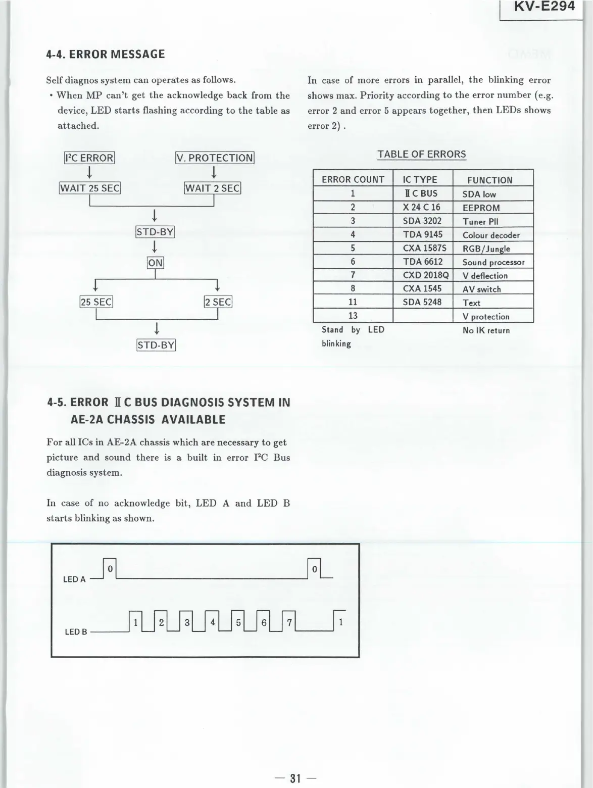 Sony KV-E2941D - Troubleshooting and Error Handling; Error Message System Overview; I2 C Bus Diagnosis System