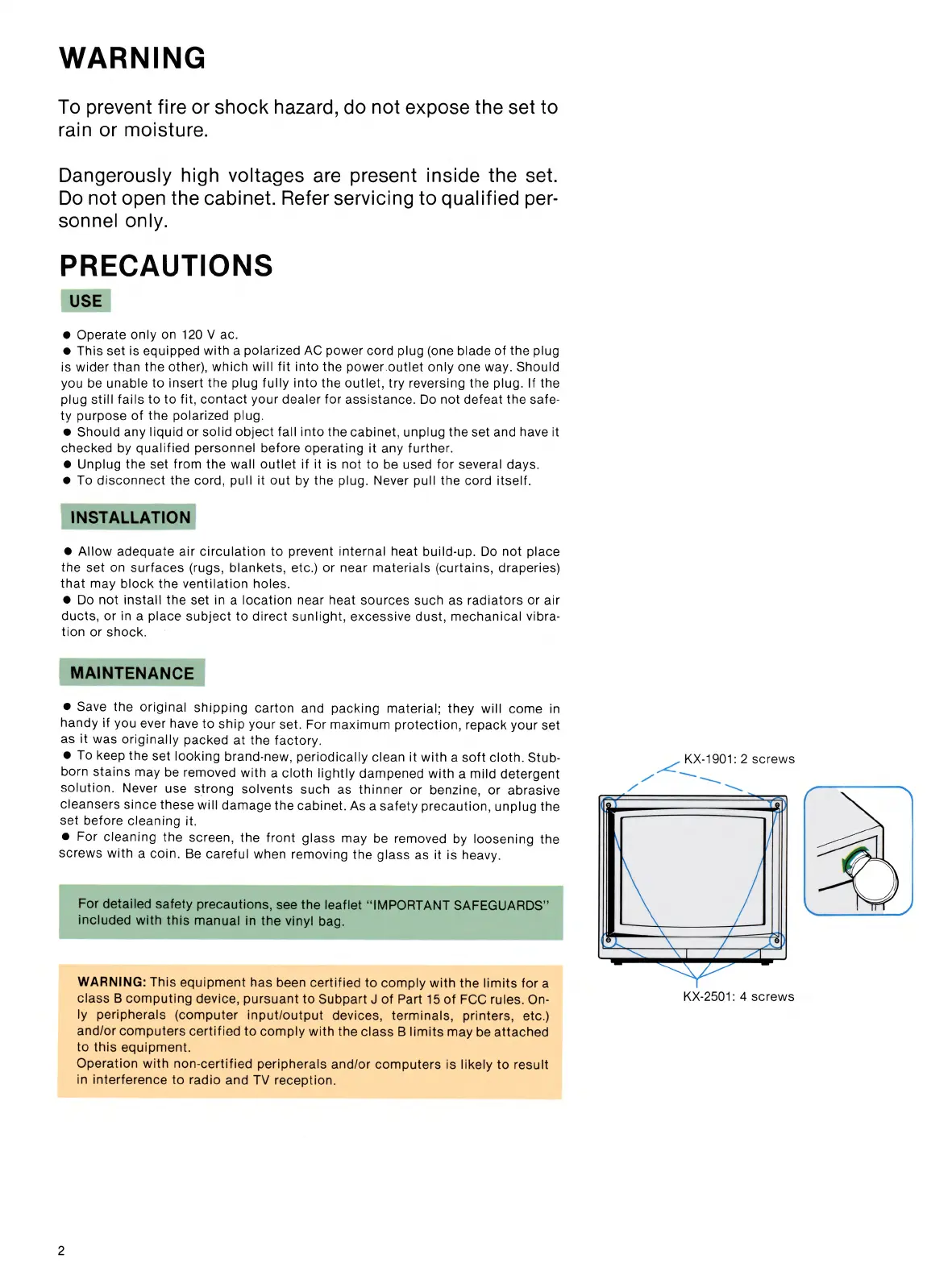 For detailed safety precautions, see the leaflet "IMPORTANT SAFEGUARDS"