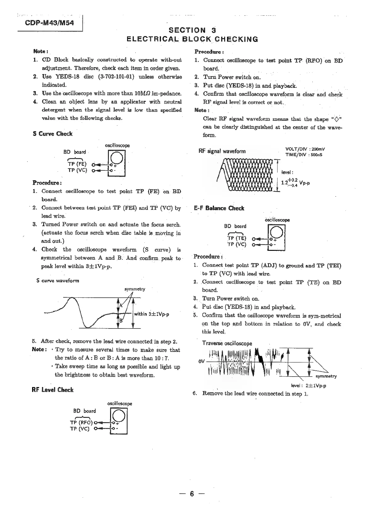 Sony LBT-A57CD - Section 3 Electrical Block Checking (CDP-M43;M54); S Curve Check; RF Level Check