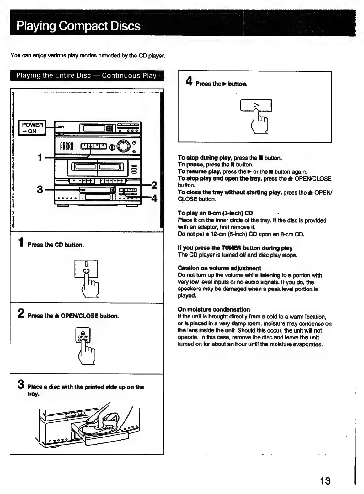 Sony LBT-D109CD - Playing Compact Discs; Continuous CD Playback