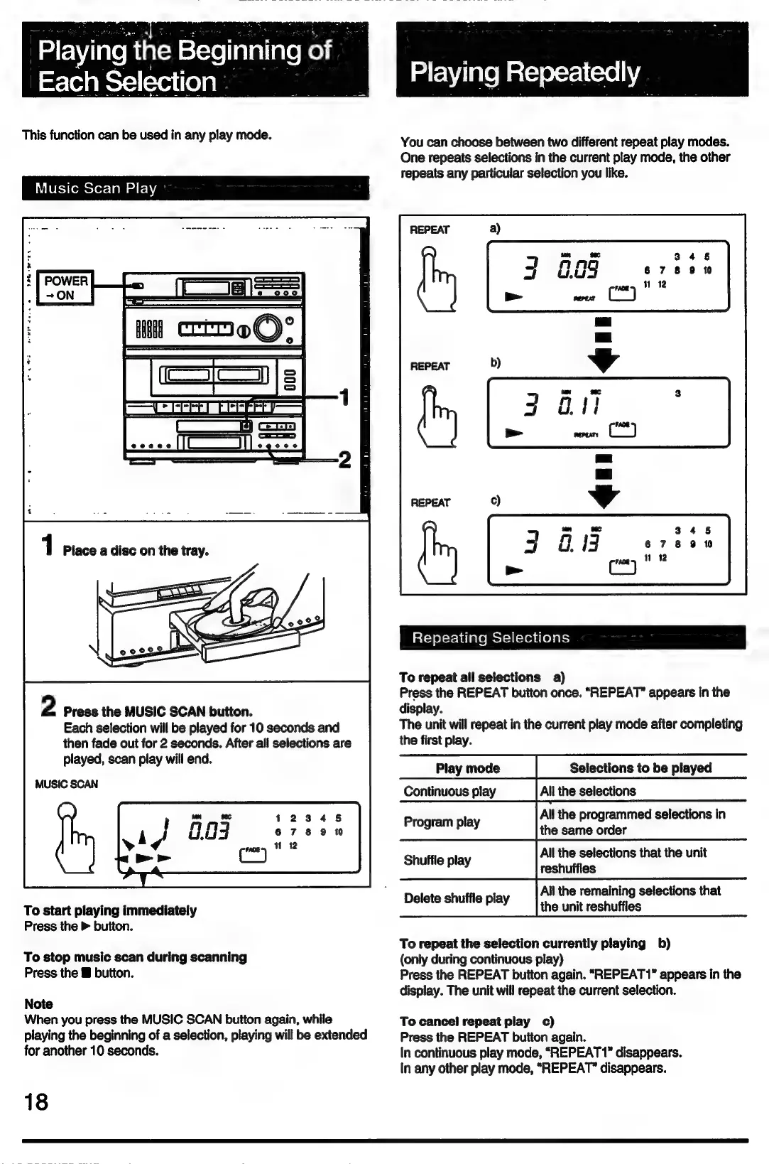 Sony LBT-D109CD - Selection Play Modes; Music Scan and Repeat Play