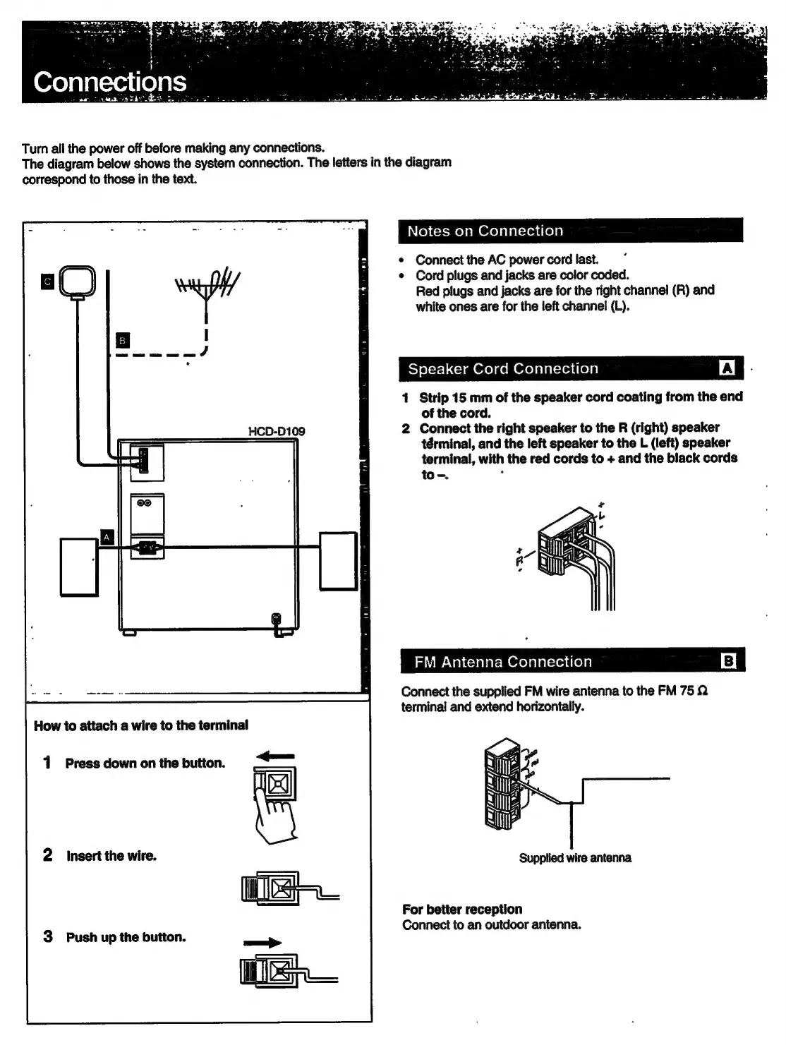 Sony LBT-D109CD - Connections; Connection Notes and Speaker Setup; Antenna Connections