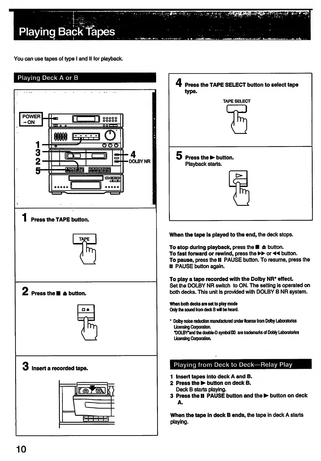 Sony LBT-D117CD - Tape Playback; Playing Tapes; Dolby NR Playback; Relay Play