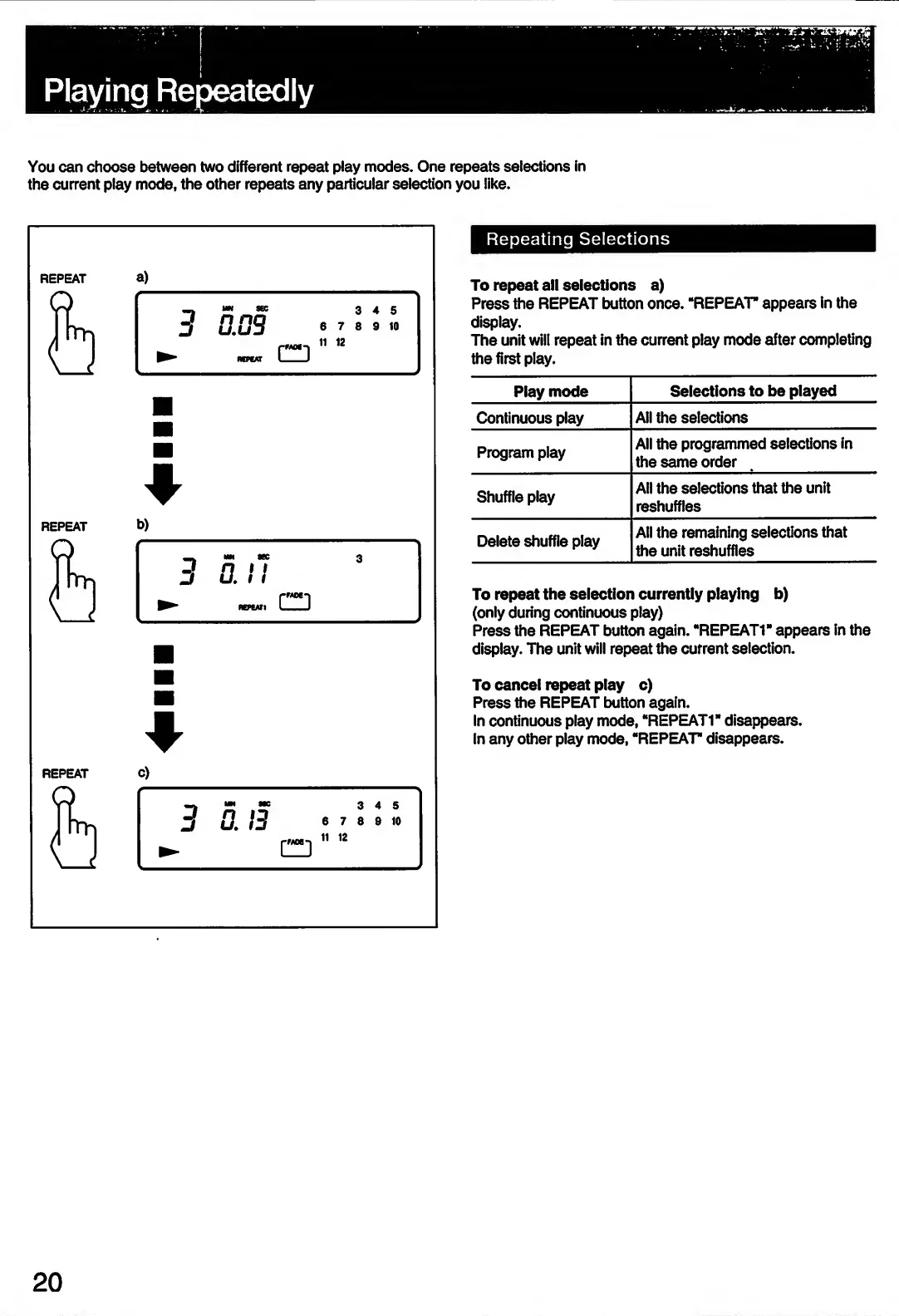 Sony LBT-D117CD - Repeat Playback Modes; Repeating All Selections; Repeating Current Selection