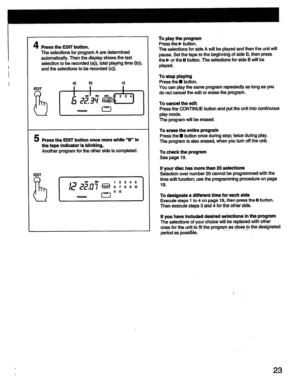Sony LBT-D117CD - Time Edit Operation; Executing Program Playback; Canceling and Erasing Programs; Program Limitations and Side Designation