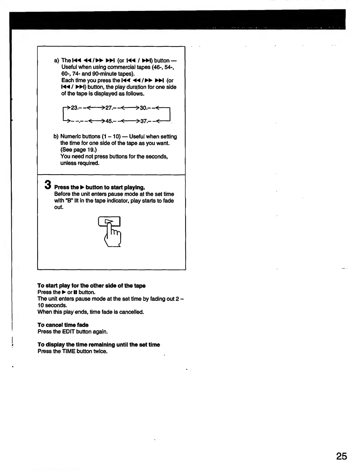 Sony LBT-D117CD - Time Fade Controls; Setting Tape Duration with Buttons; Starting and Cancelling Time Fade