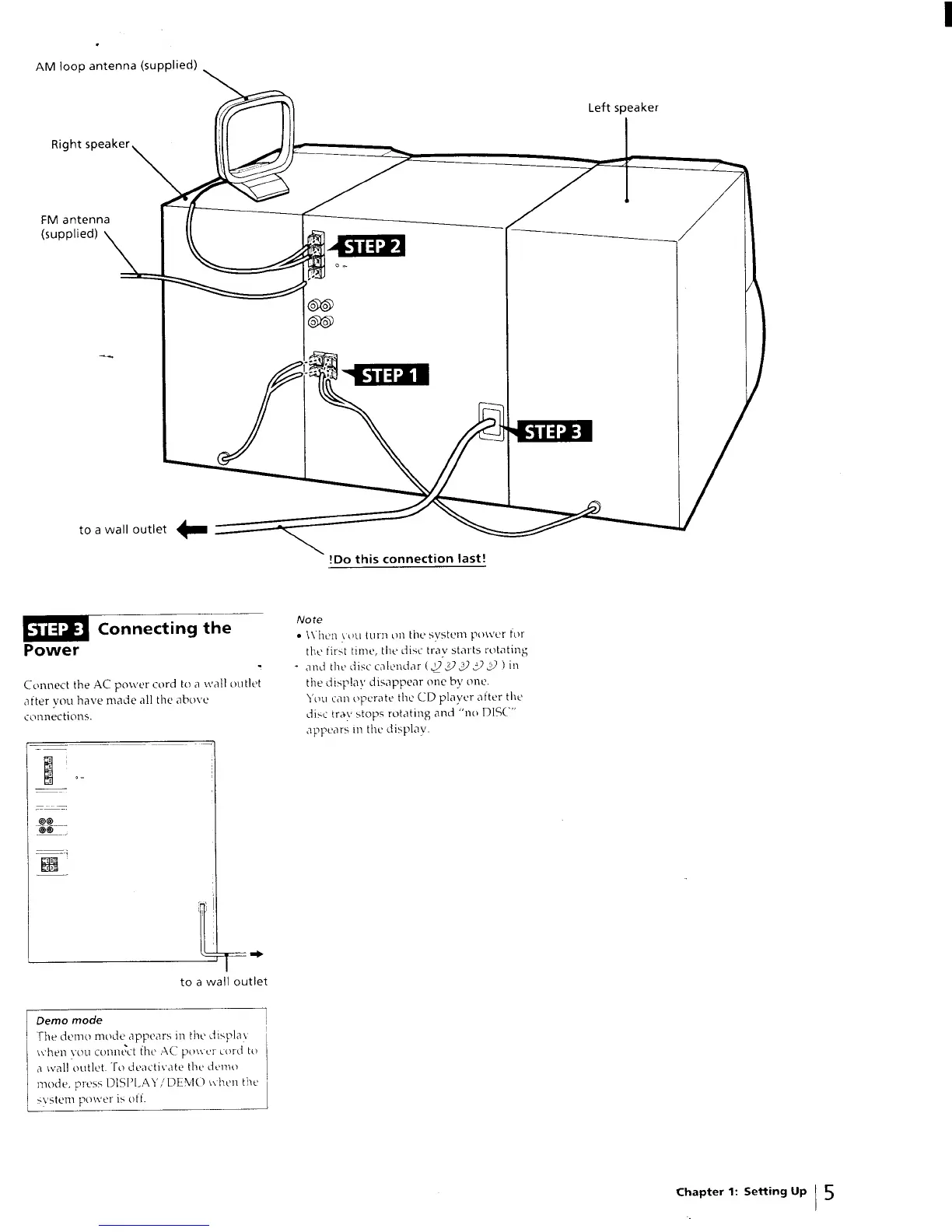Sony LBT-D270 - Connecting the Power; Demo Mode