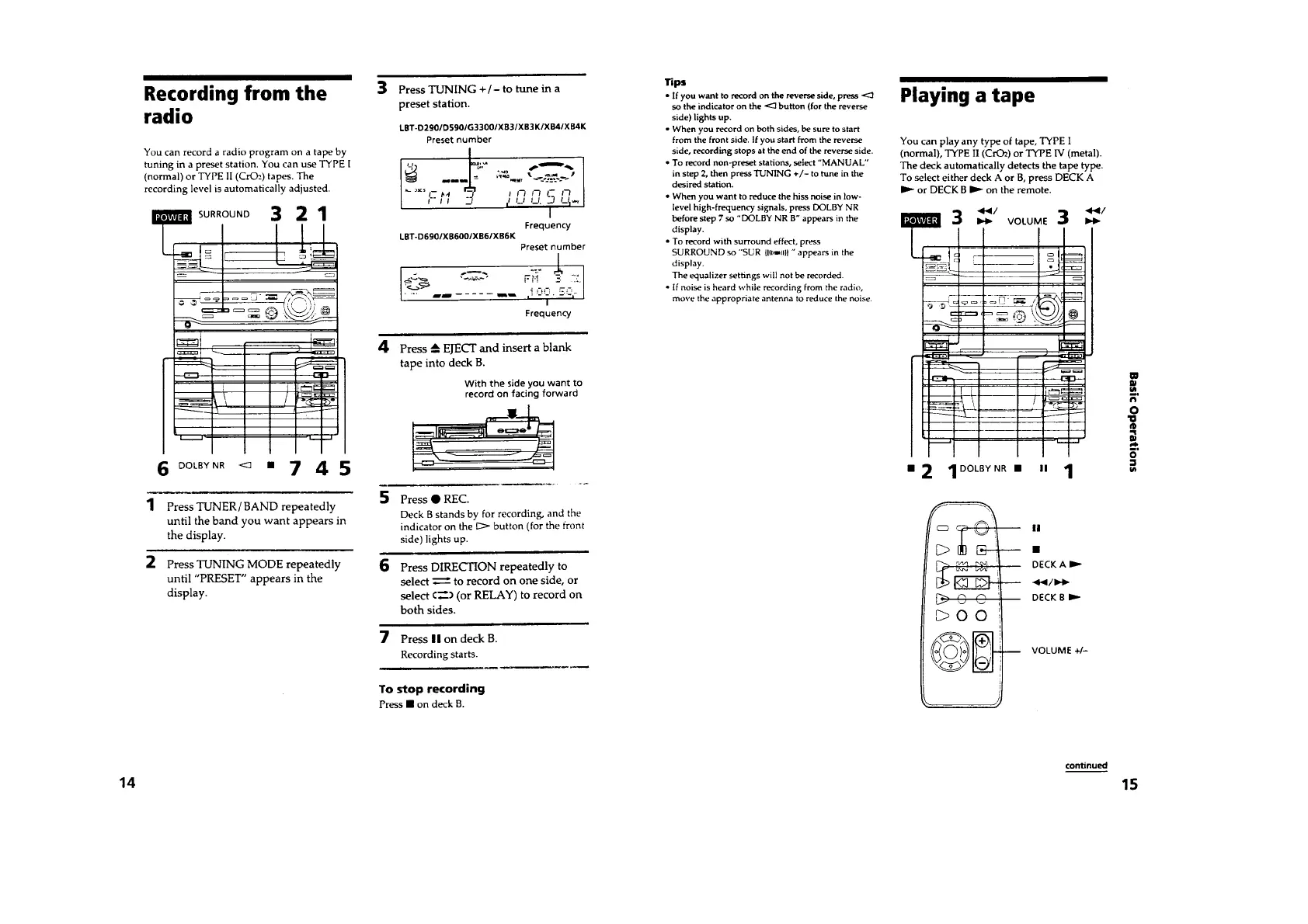 Sony LBT-D290 - CD and Radio Operations; Programming CD Tracks (Program Play); CD Synchro Recording; Tuning Radio Stations