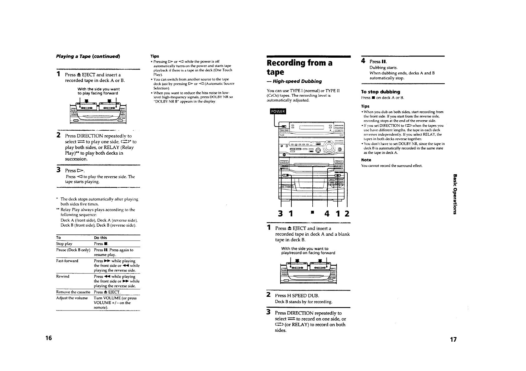 Sony LBT-D290 - Tape and Radio Recording; Recording Radio Programs to Tape; Playing Tapes