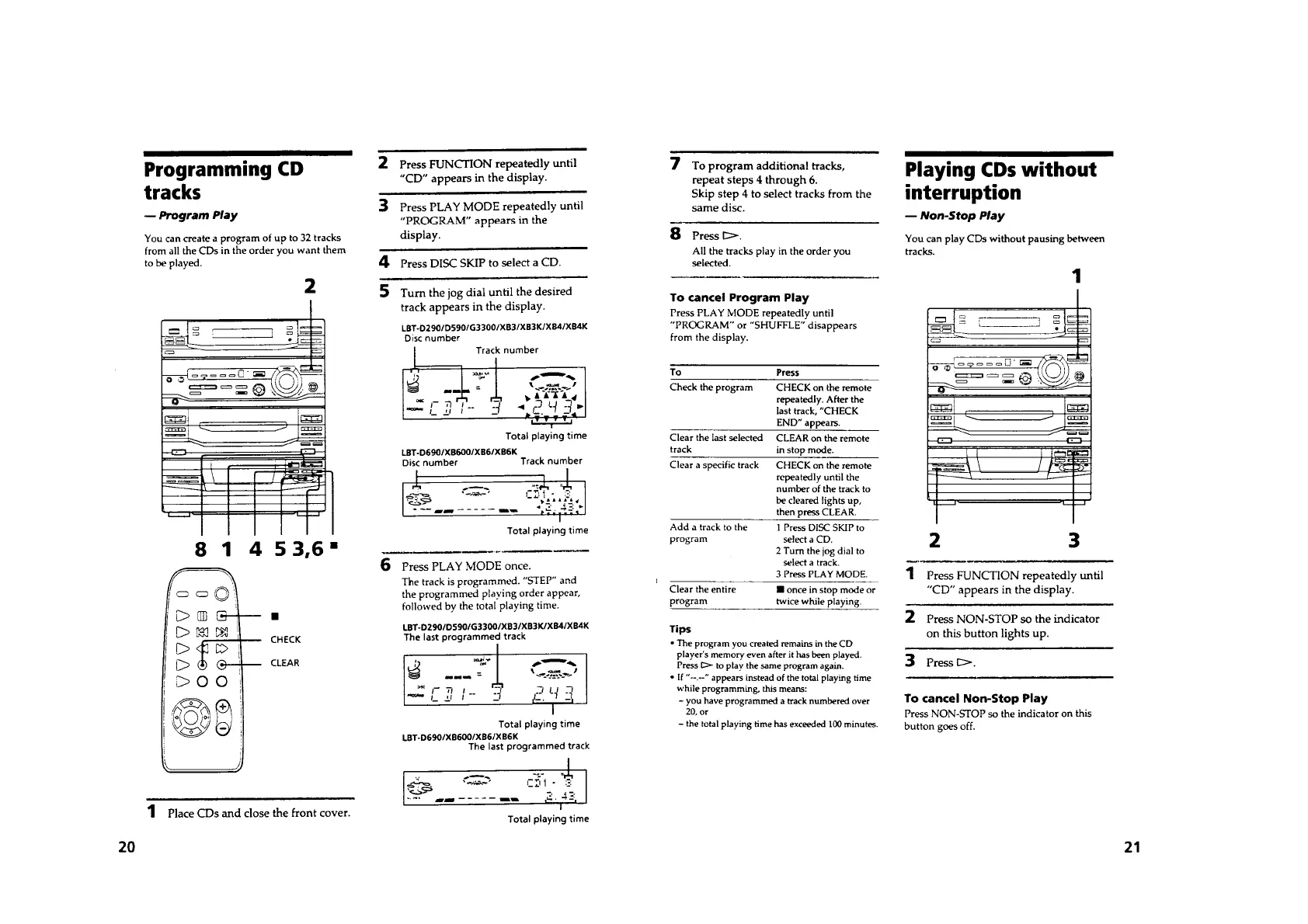 Sony LBT-D290 - Manual Recording and CD Track Ordering; Manual Tape Recording; CD Track Order for Recording
