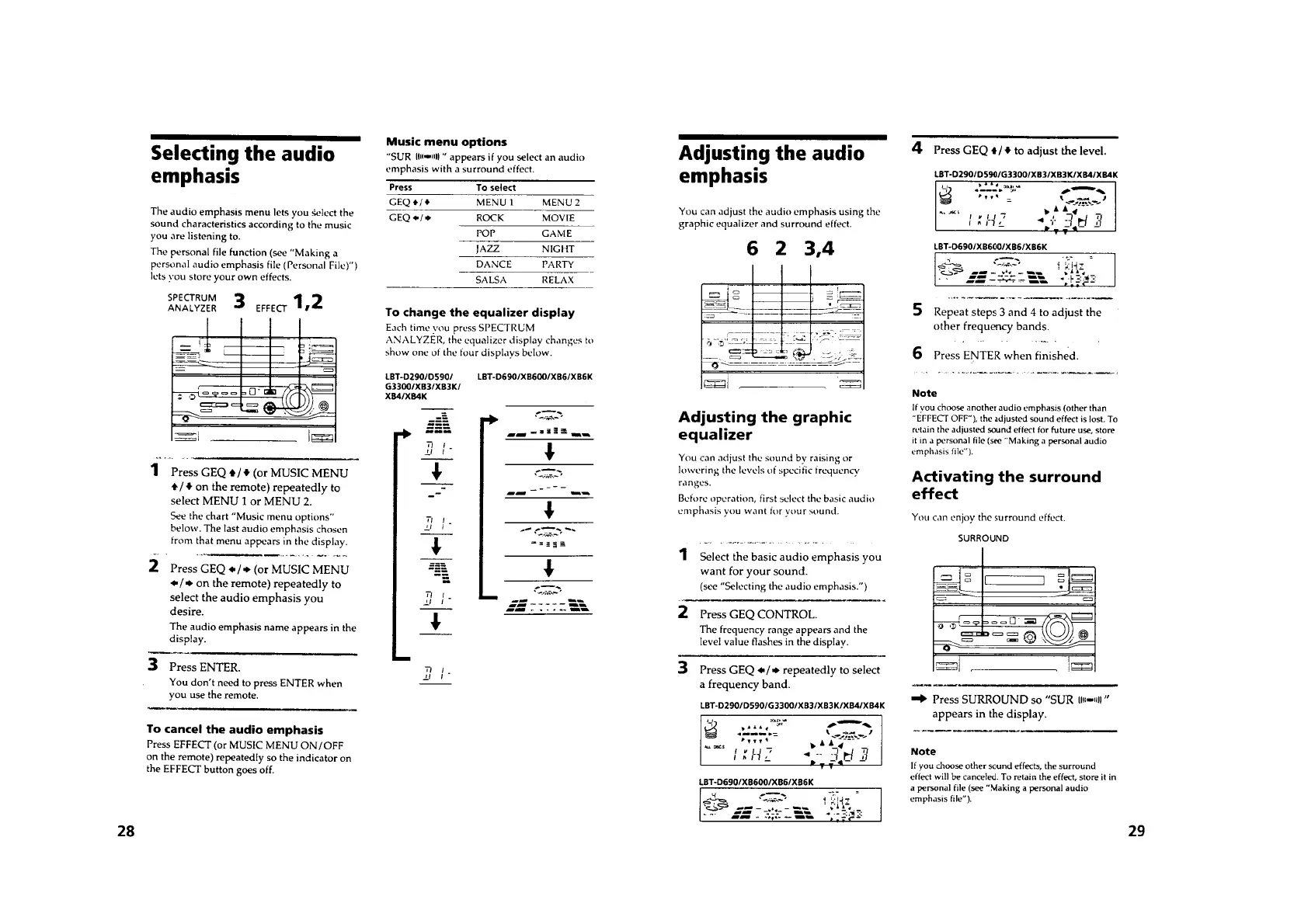 Sony LBT-D290 - Audio Emphasis and Surround Sound; Selecting Audio Emphasis; Adjusting Audio Emphasis and Surround