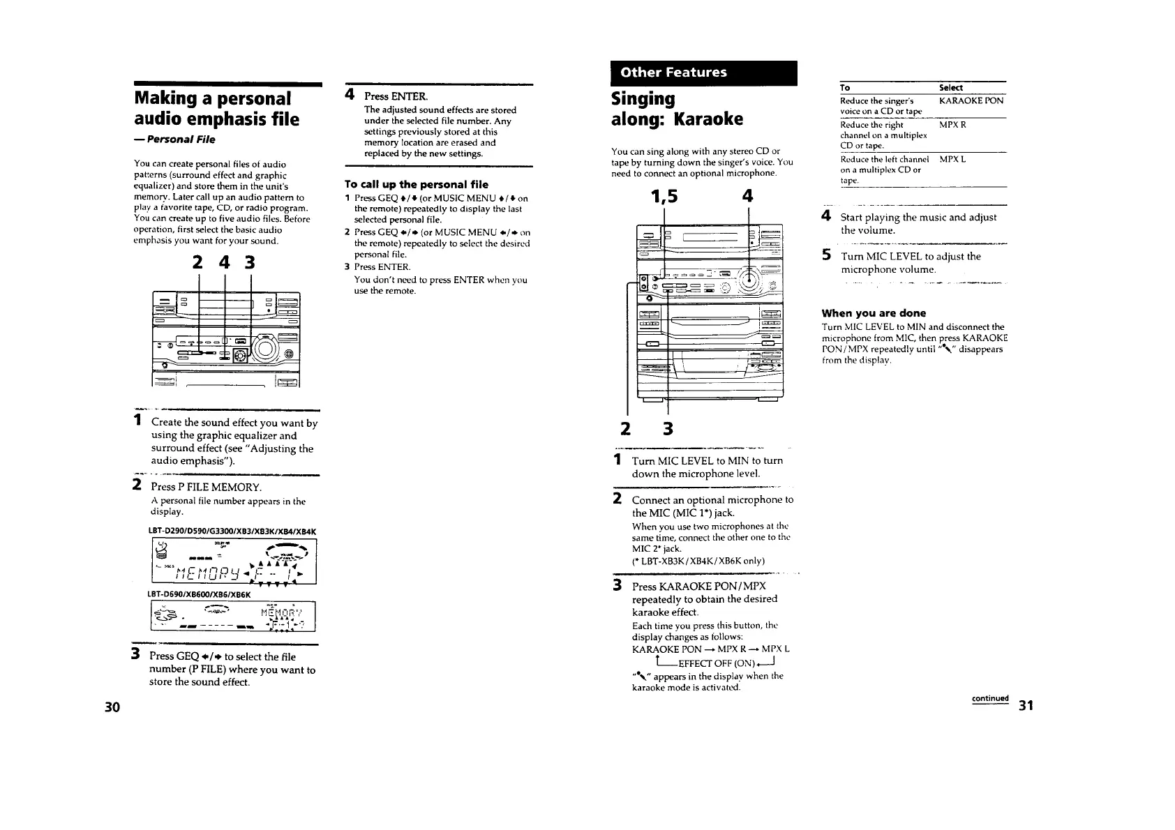Sony LBT-D290 - Personalization and Karaoke Features; Personal Audio File Creation; Karaoke Functionality