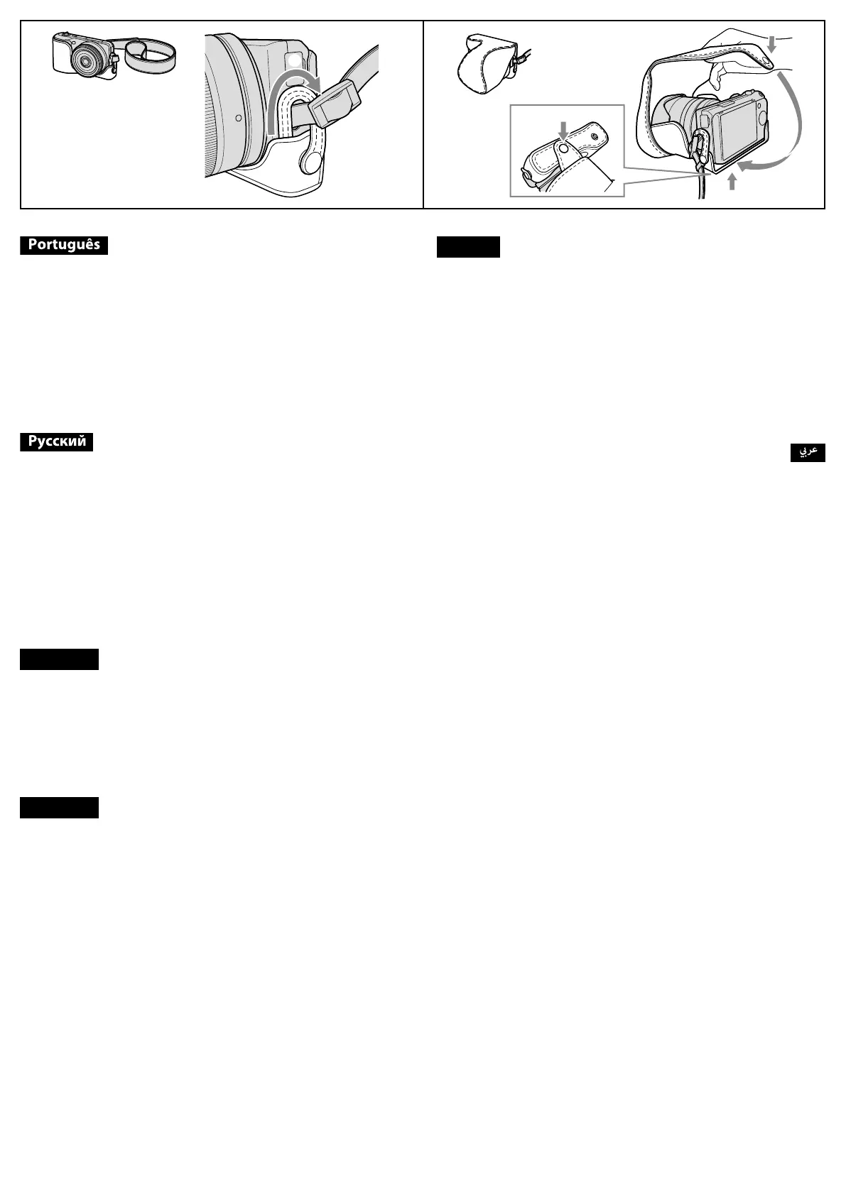 将机身罩安装在相机上,然后如图中所示固定好肩带。