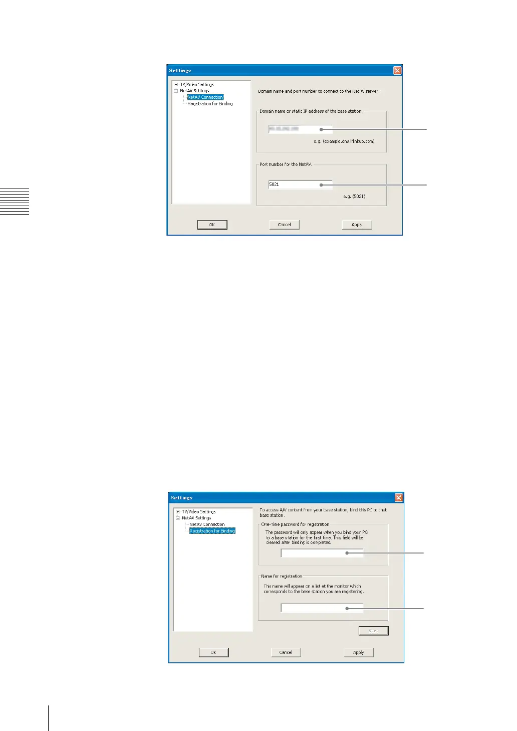 you select [Settings], [Base station], [NetAV Settings], and then open the