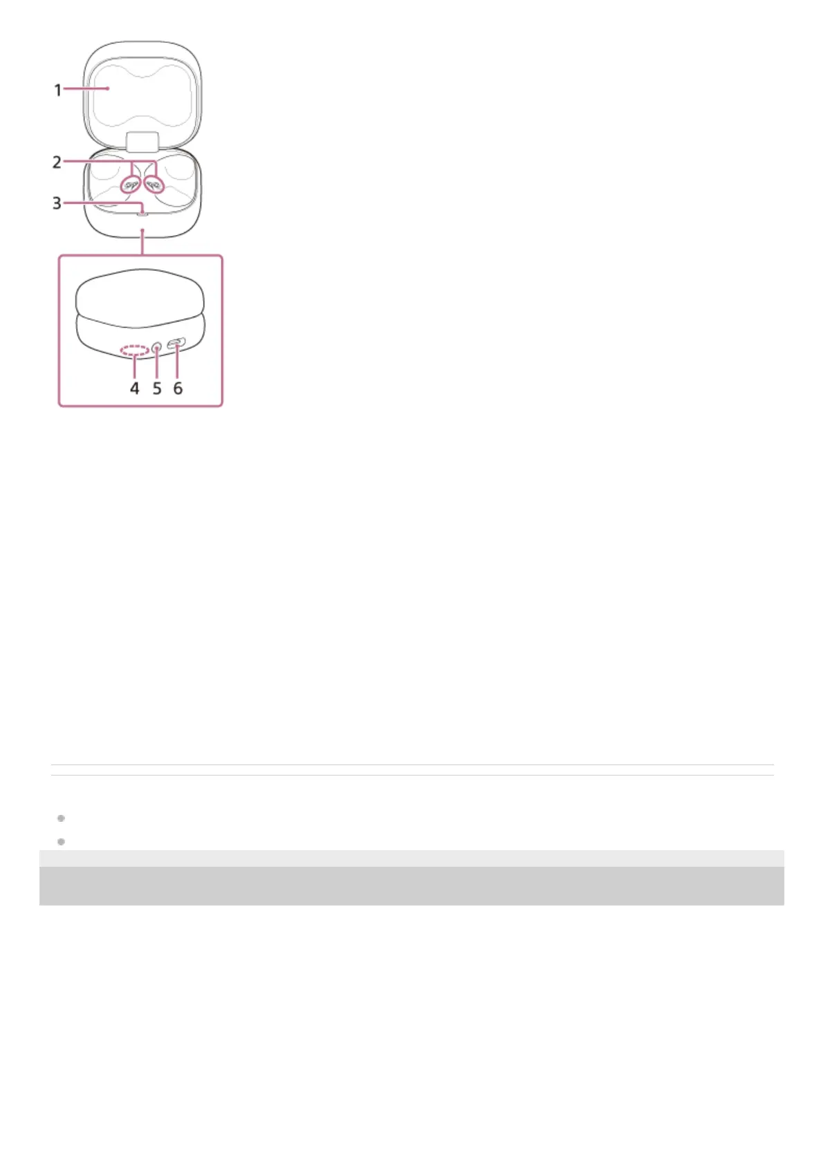 Indicates the remaining battery life of the headset units and charging case, the charging status, or the status of the