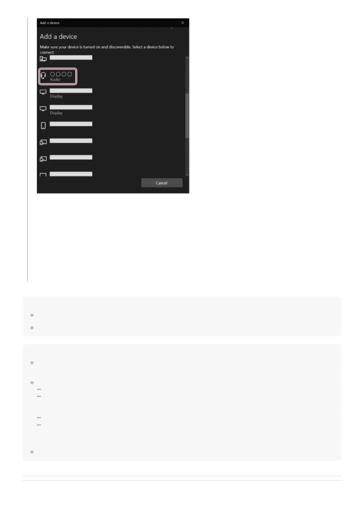If pairing is not established within 5 minutes, pairing mode is canceled. In this case, start the operation again from step 2 or step