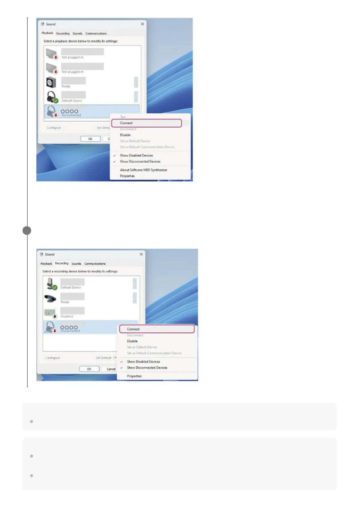 On the [Recording] tab, select [LinkBuds Open], right-click it, and select [Connect] from the displayed