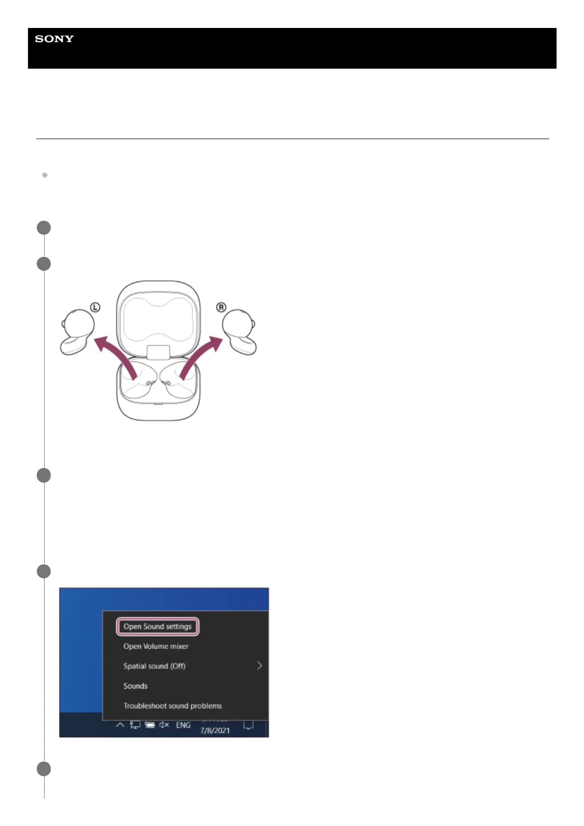 On your computer screen, right-click the speaker icon on the toolbar, then select [Open Sound settings].