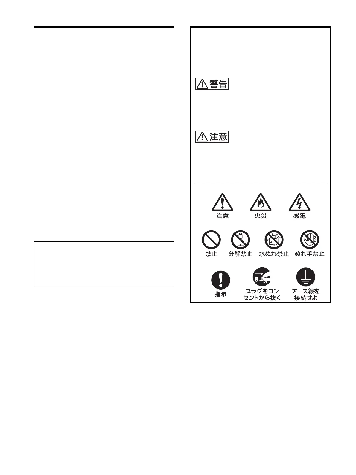 4 〜 6 ページの注意事項をよくお読みください。製品全般