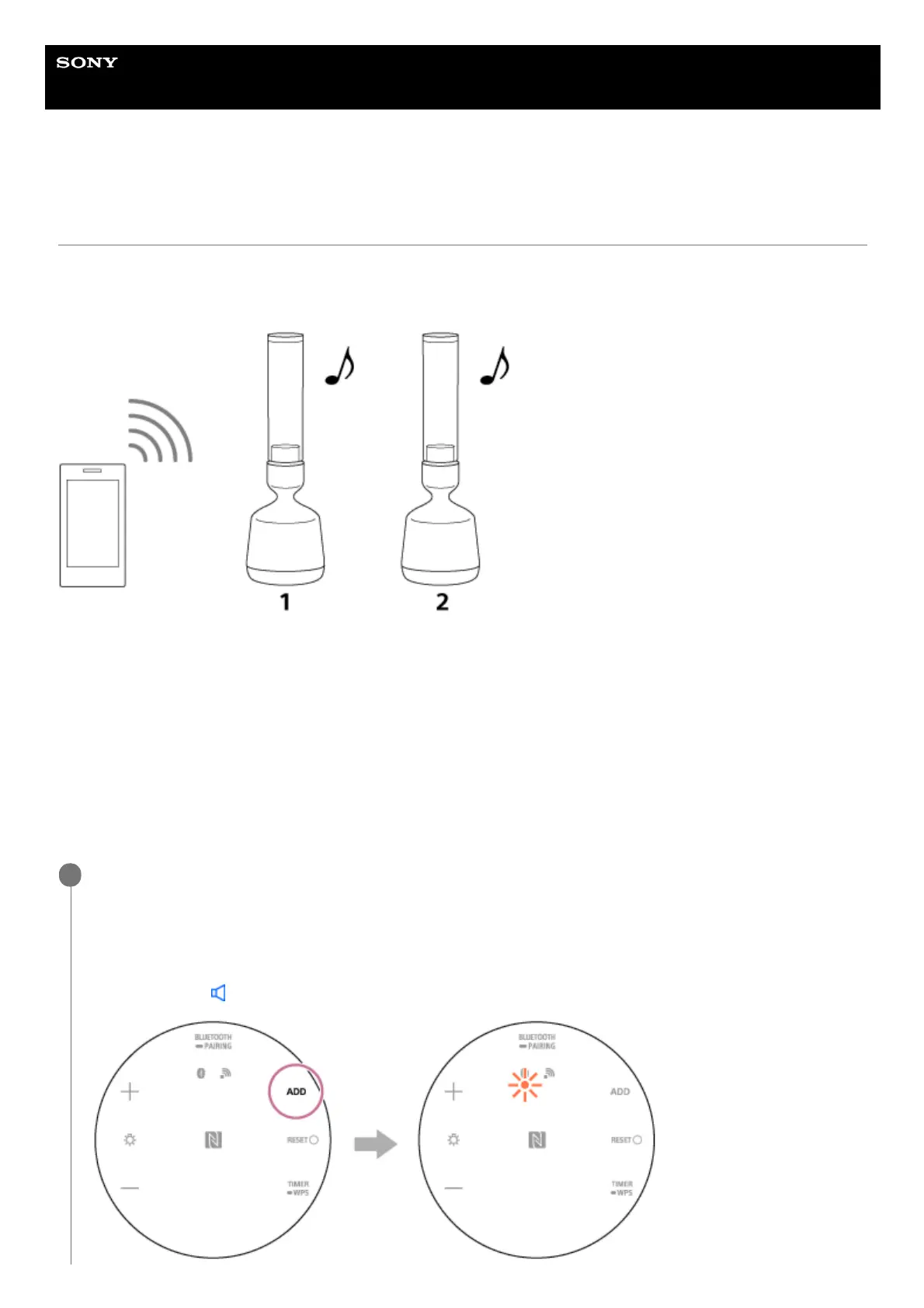 Turn on 2 speakers and bring them within 1 m (3.2 ft) of each other. Then press and hold the ADD (Speaker