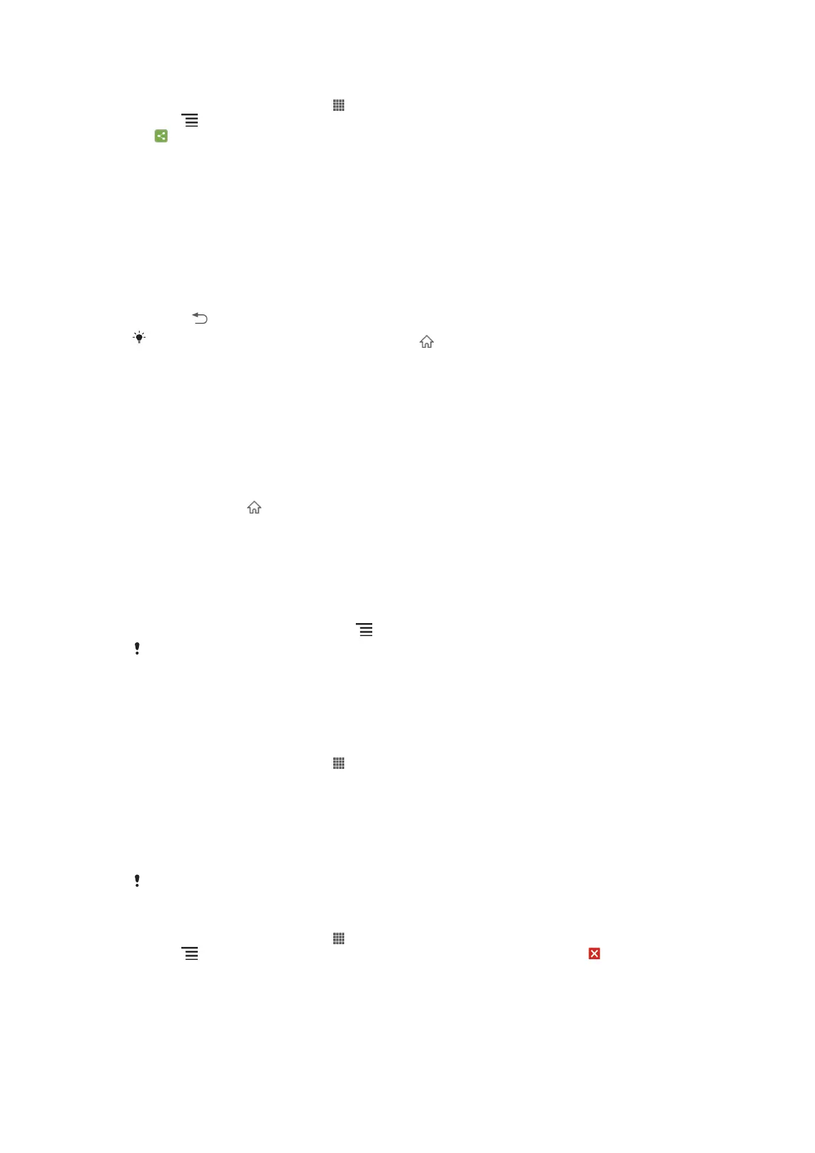 2 Tap , then tap Share. All applications which can be shared are indicated by