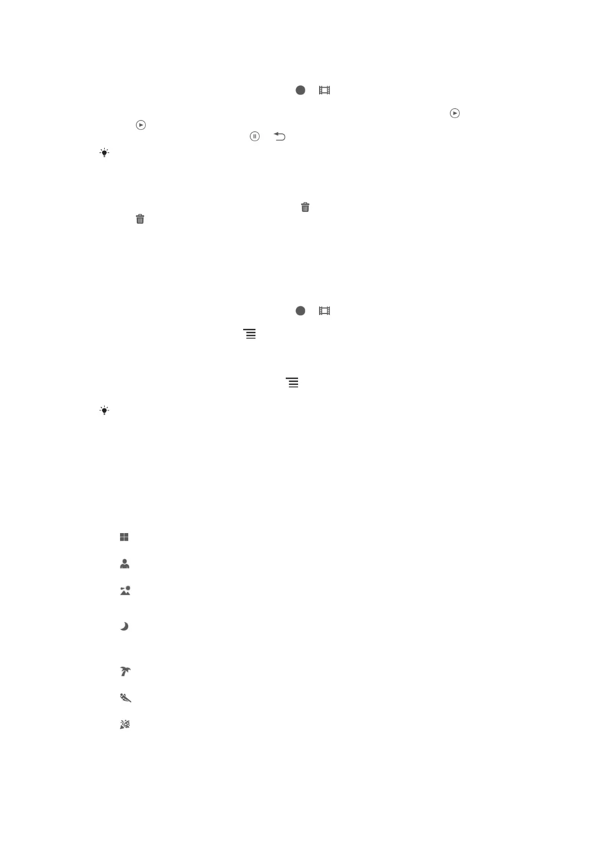 preprogrammed scenes. The camera determines a number of settings for you to fit the
