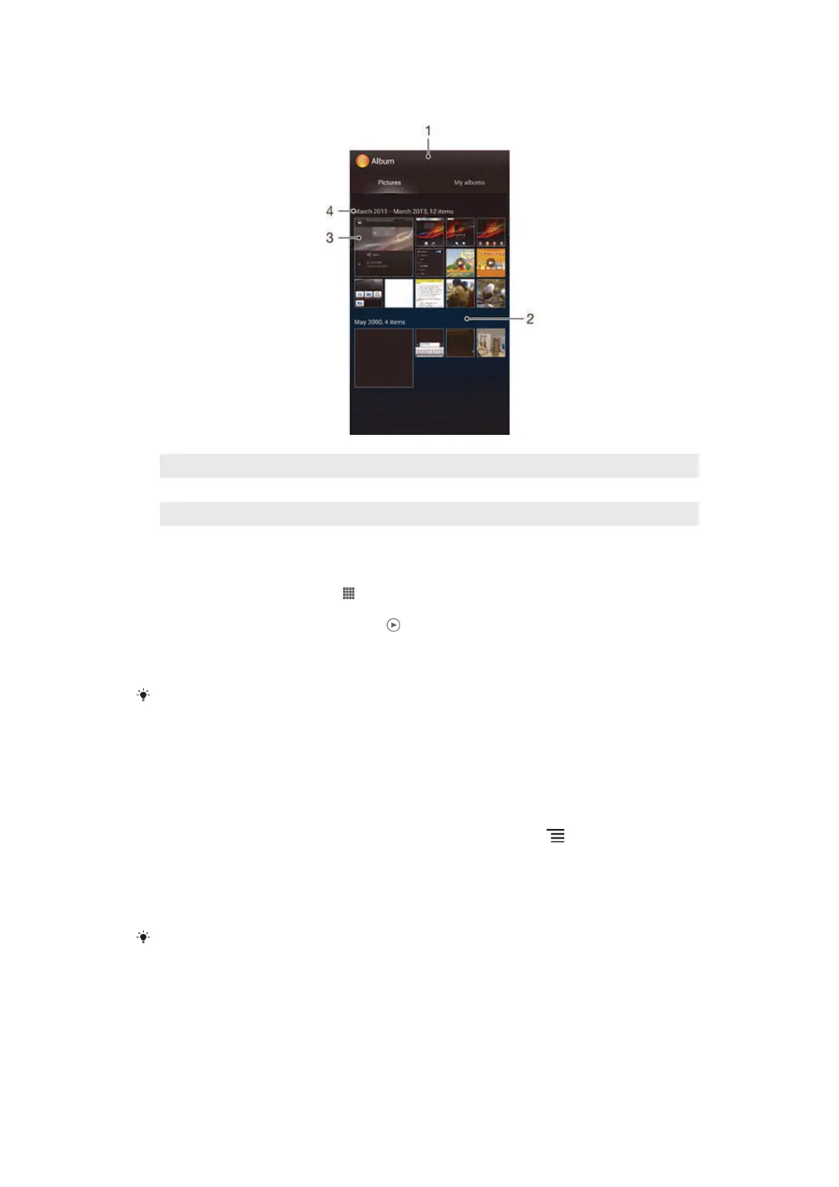 2 Find and tap Album. All photos and videos are displayed in a chronologically