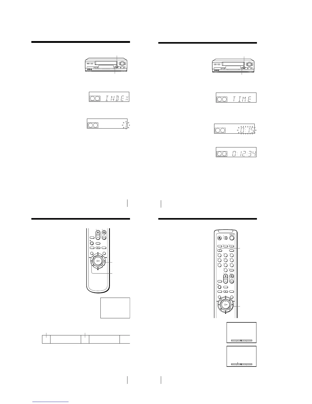 Press SEARCH MODE on the VCR repeatedly until “INDEX” appears in the