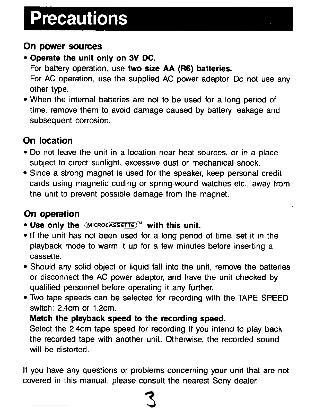 Sony M-717V Primary - Precautions