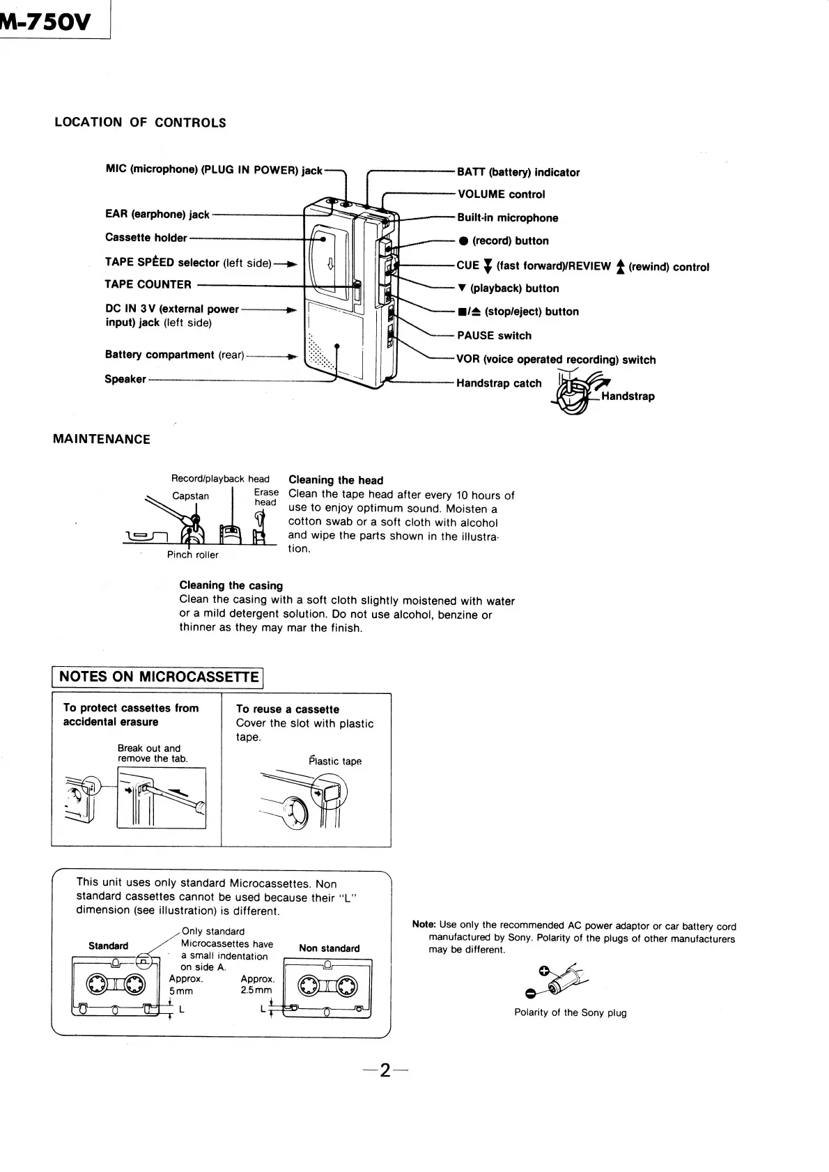 Sony M-750V - Tape Counter; Maintenance