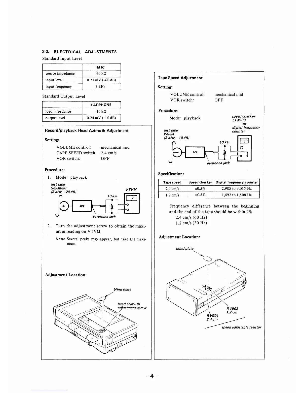Sony M-88V - Electrical Adjustments; Head Azimuth Adjustment; Tape Speed Adjustment